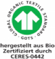 This product has a natural fibre content of up to 94% from controlled organic cultivation or controlled organic animal husbandry and is therefore certified by GOTS with the label "Made with organic materials".