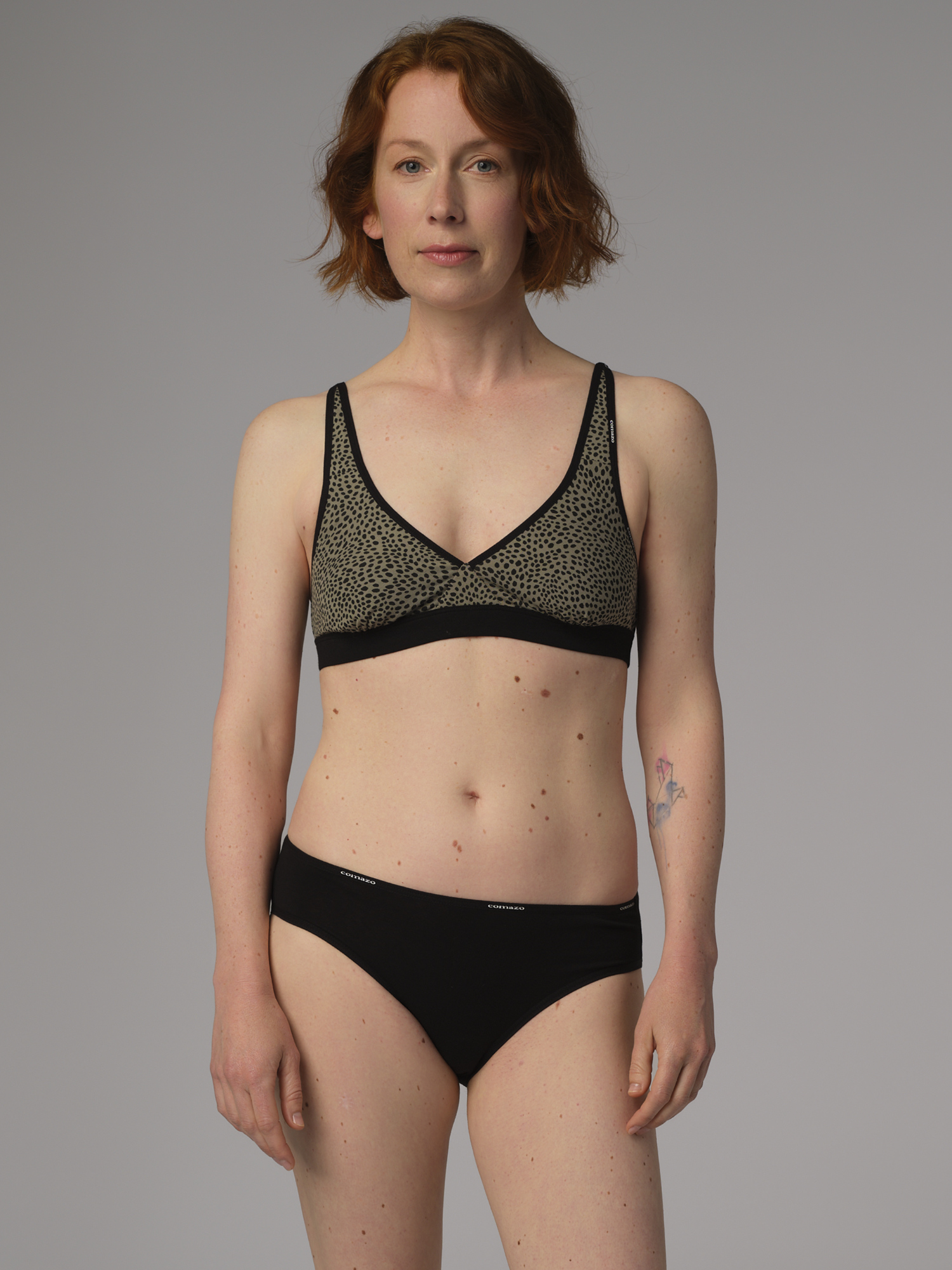 This triangle bra combines a sporty look with maximum comfort. The soft material feels comfortable against the skin, while the contrasting black trims make it particularly eye-catching. Thanks to the non-wired design, it offers natural freedom of movement and gentle support - perfect for everyday wear or relaxing hours at home.