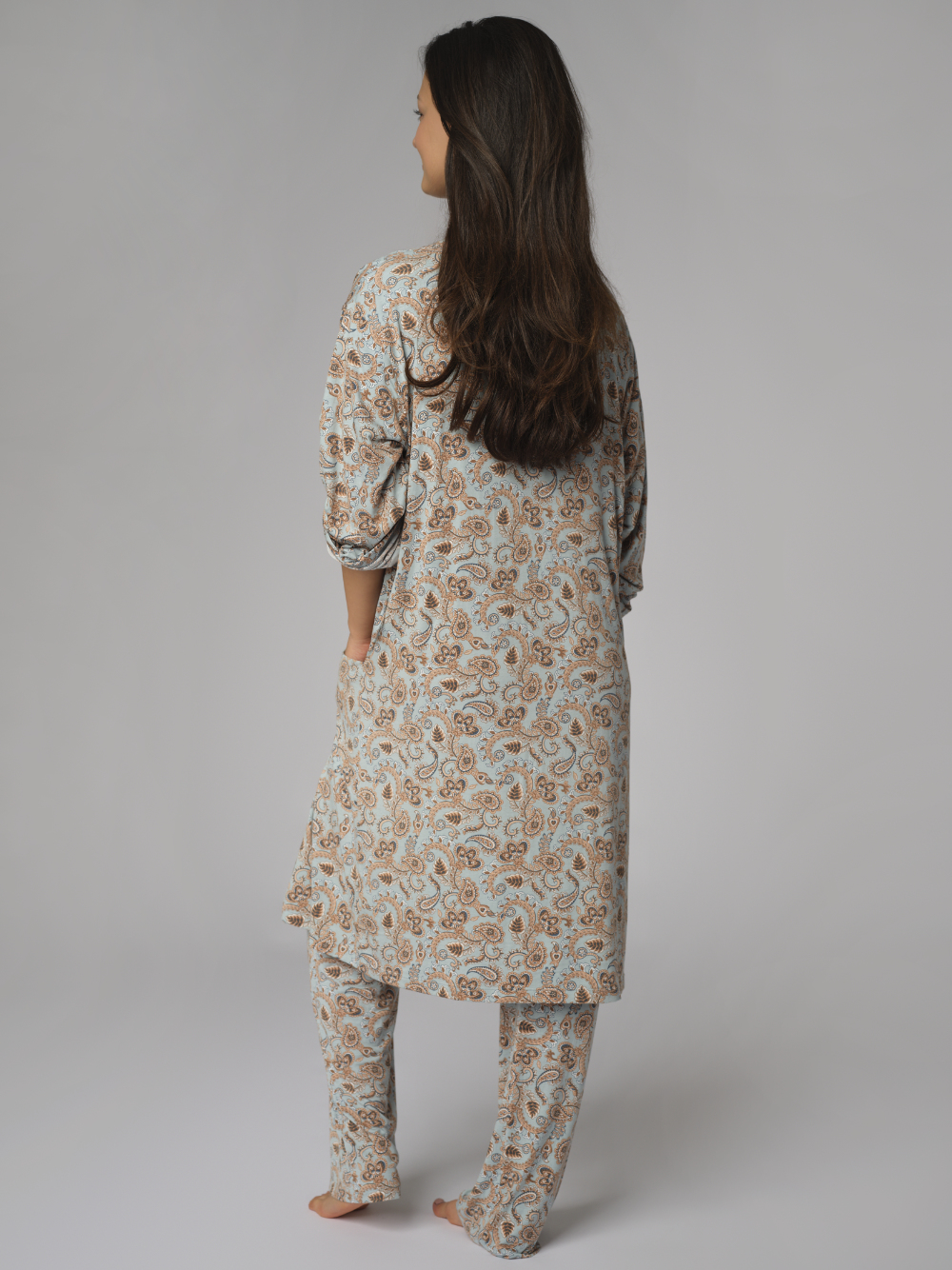 Diese Loungejacke aus Micromodal verbindet stilvolle Lässigkeit mit luxuriösem Tragekomfort. Der fließende Stoff liegt seidig weich auf der Haut, ist atmungsaktiv und besonders pflegeleicht. Der legere Schnitt bietet Bewegungsfreiheit und macht die Jacke zum perfekten Begleiter für entspannte Stunden zu Hause – ob morgens zum Kaffee, abends zum Runterkommen oder zwischendurch zum Wohlfühlen.